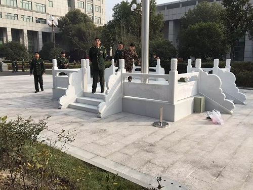 部队旗杆及汉白玉旗台制作安装完成