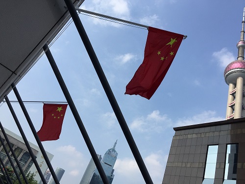 不锈钢斜插旗杆安装完成